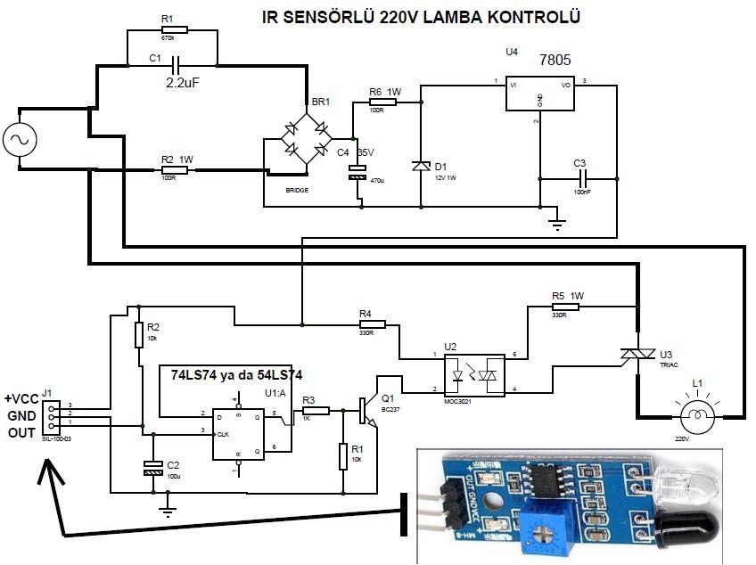 Bu entegre kullanılarak, sensöre cisim yaklaştırdığımızda triyak devresini tetikleriz.