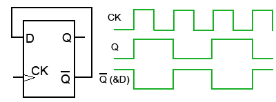 CLK(CK) giriş sinyaline dikkat ettiyseniz Çıkış sinyali ancak, CK sinyali LOW dan HIGH ‘a çıkarken (Q) çıkış sinyali durum değiştirir. Q çıkışı ise Q çıkışının tersidir.
